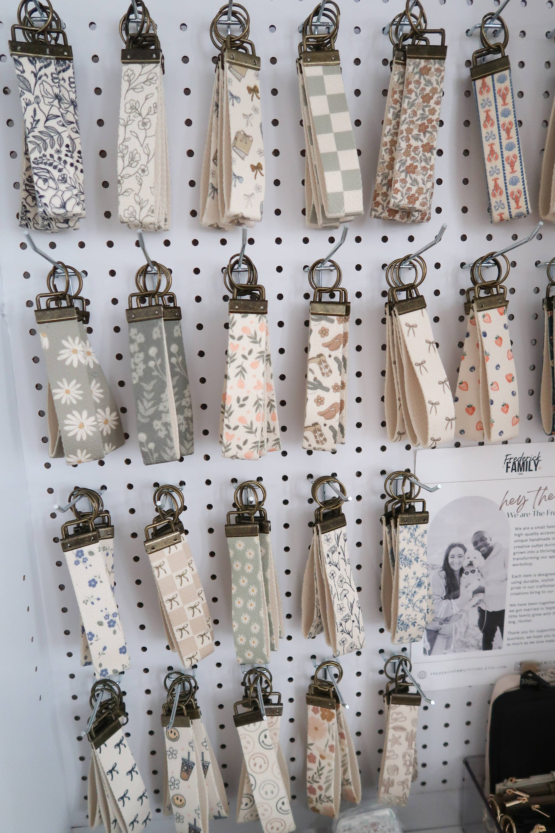 This handmade Canvas Wrist Keychain Lanyard is the cutest and most convenient car key holder. It comes with bronze hardware and a lobster clamp and has an approximate length of 5.5 inches from the top of the hardware. Its design makes it a perfect accessory for anyone who wants to keep their keys secure and easily accessible. Each keychain is uniquely crafted to order, making it a personalized and thoughtful gift option.