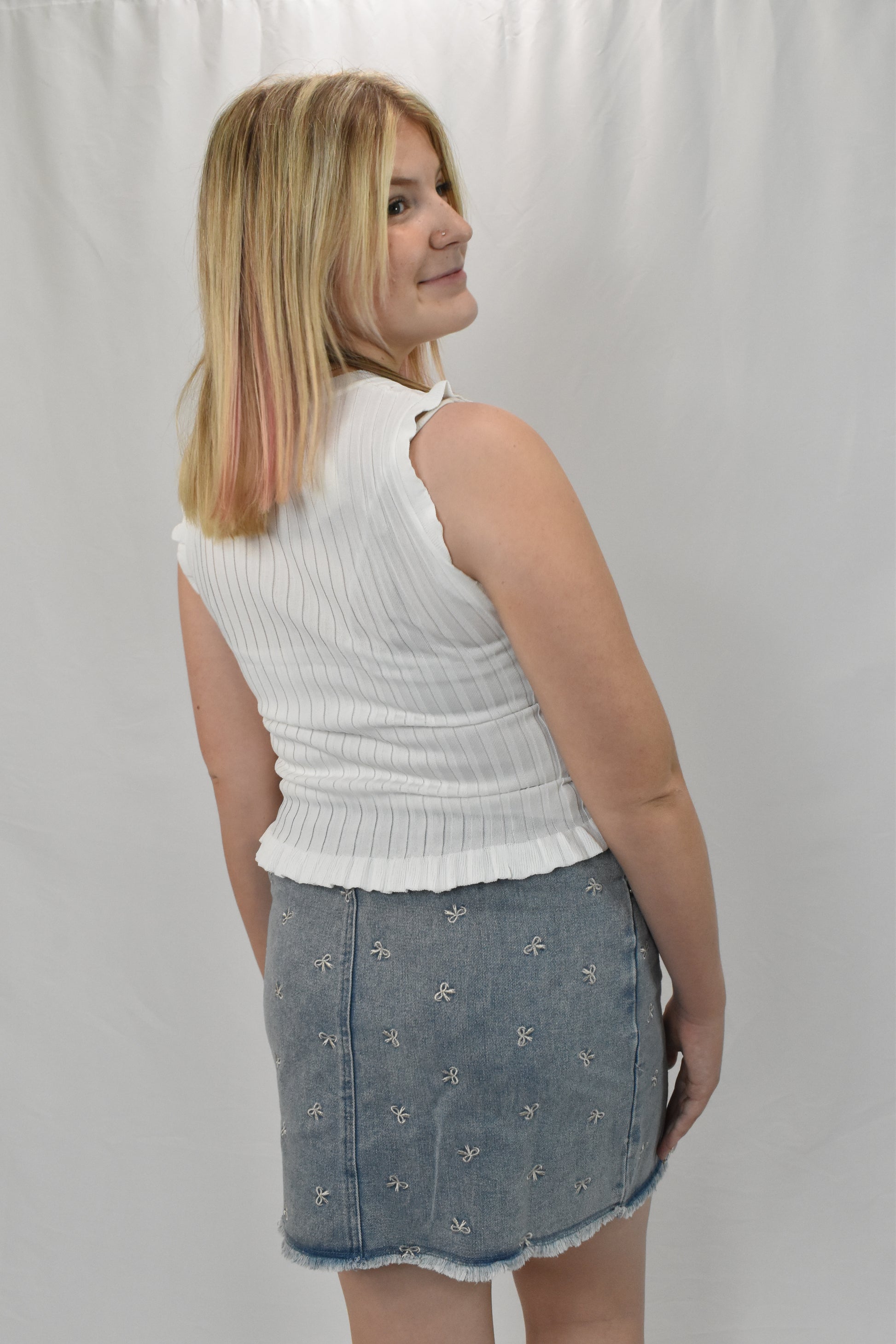 White Sleeveless Frill Top